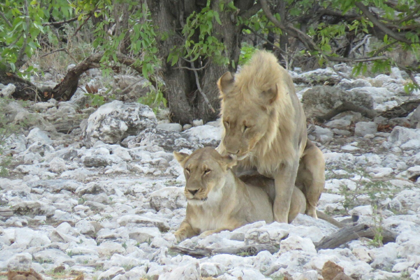 Edu y Carlos continuaron con el viaje. Durante su estancia en el parque Nacional de Etosha vieron algunas especies de animales no vistas anteriormente. Hienas, un rinoceronte y una pareja de leones entregados a sus juegos amorosos. Partieron por la mañana temprano.