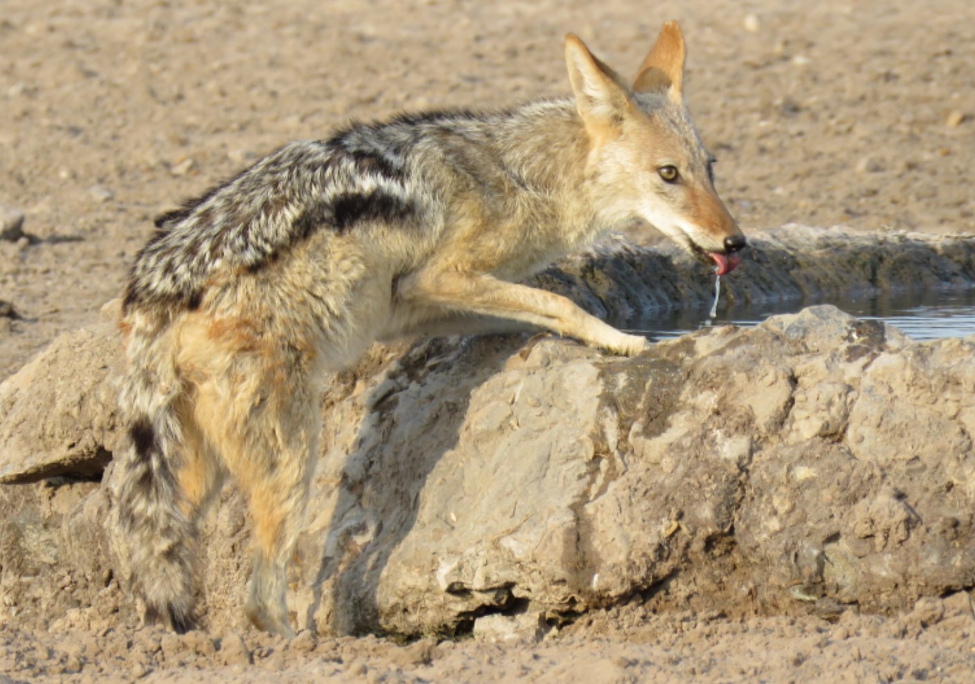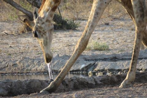 Tras el almuerzo se dirigieron al Motopi Water Hole, un pozo donde los animales acudían para beber. Era curioso, pues los animales llegaban por grupos, bebían e iban retirandose. Primero vieron a un grupo de oryx, luego un grupo de chacales y por último un grupo de curiosas jirafas que los observaban tan curiosas como ellos.