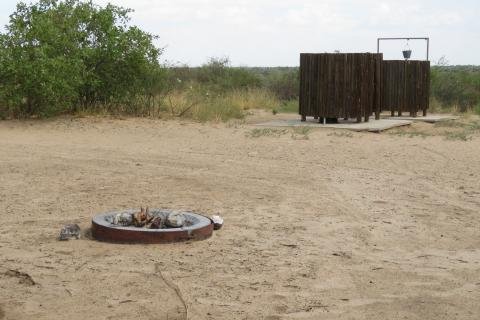 En el camino vieron menos animales de lo que esperaban, aunque grandes excrementos anunciaban la presencia de elefantes. El camping asiagnado está a 45 kilómetros de la entrada, lo cual quiere decir que, como el parque tiene una extensión de 52.000 metros cuadrados (más grande que Holanda o Extremadura), los seres humanos más cercanos eran los empleados de la entrada. Después de conducir unas horas llegaron al camping, que era nada más que un espacio para un par de vehículos y un máximo de seis personas del mismo grupo. Había dos árboles que daban un poco de sombra y dos habitáculos de troncos, uno era el retrete y el otro la ducha (un cubo colgado de un gancho). La entrada de cada uno contaba con sendas placas metálicas con la inscripción OCUPADO.