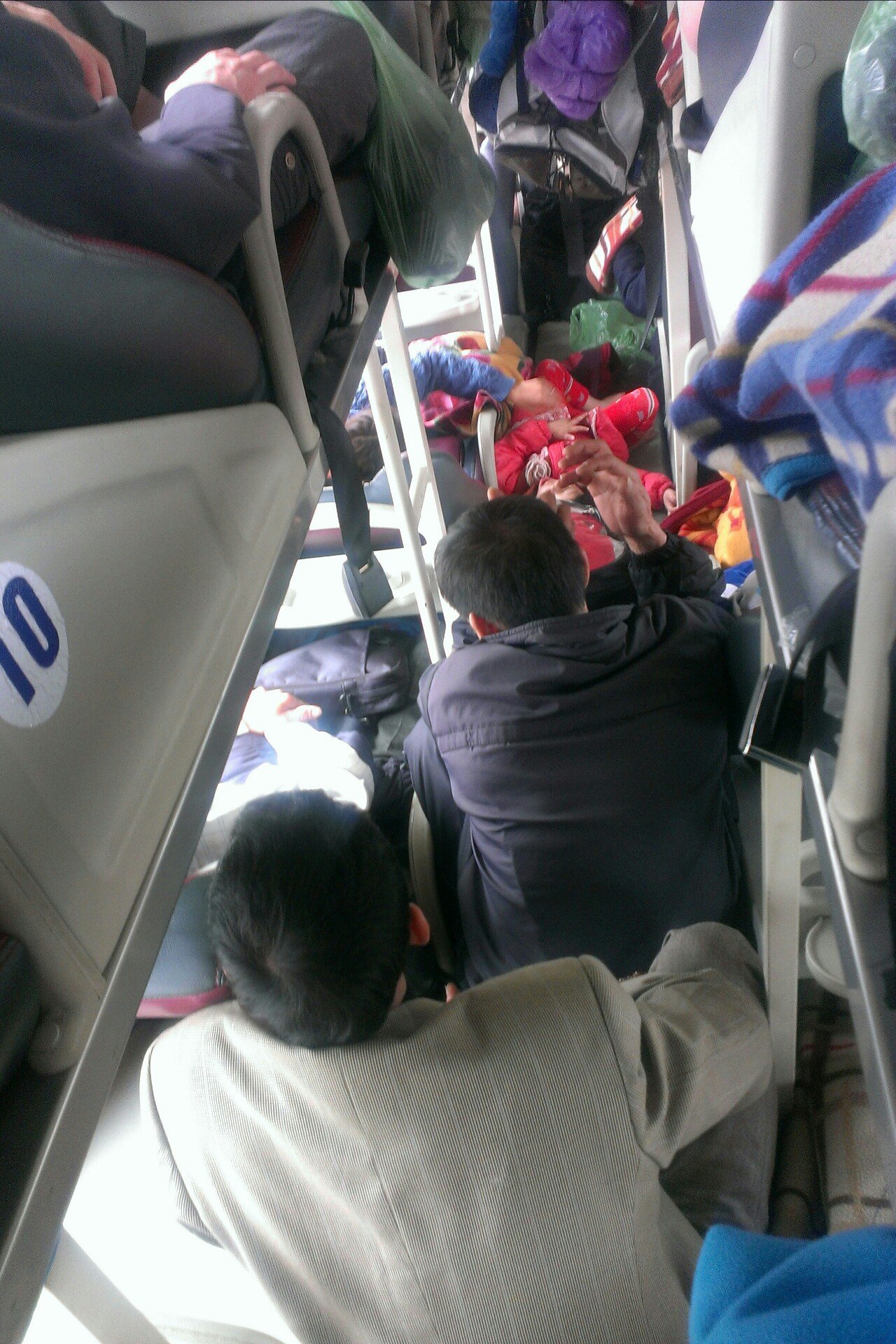 En contra de lo que pensaban, el autobús "de lujo" no era exclusivo para las dos docenas de guiris que habían subido en el punto de partida. Vieron con sorpresa como el autobús paraba a menudo en plena autopista para dejar subir más pasajeros, todos ellos lugareños. Pronto incluso los pasillos se llenaron de gente. En una de las paradas en la autopista el autobús se puso en marcha atrás sin razón aparente... !un pasajero se habia quedado atrás! Afortunadamente resultó que incluso en Vietnam no todo esta permitido en el tráfico, pues dentro de unos segundos llegó la policía para multar el conductor.