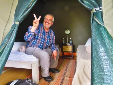 Total, llegaron a la hora prevista en Windhoek pero no había nadie para recogerles porque Edu había avisado a la gente de la compañía de alquiler de coches que iban a llegar antes y resultó que el conductor se hartó de esperar y se marchó. Al final fuero en taxi al Urban Camp en Windhoek, un viaje de unos 40 kilómetros.