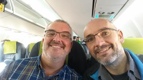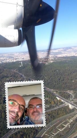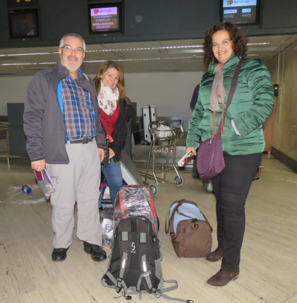 Edu y Carlos salen en nueva aventura. Marina y María les acompañan al aeropuerto entre bromas y risas( Carlos lleva un poco de miedo y solo tres toallas que piensa lavar en el río Zambete pidiendo permiso a dos negras orondas y a los cocodrilos). Salen de Sevilla a las 11 y tras una horita en un avion pequeño que parece una avioneta de fumigar llegan a Lisboa. Edu hace unas gestiones para que el equipaje vaya directamente a Windhoek, de lo contrario tendrían que salir del aeropuerto de Luanda (Angola) para recoger equipaje y para este menester se necesita visado !Qué de cosas!. N